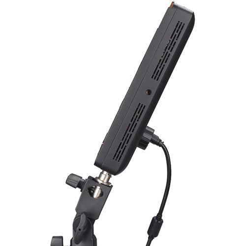 The on or off-camera Amaran AL-528W Daylight LED Flood Light from Aputure is a daylight-balanced (5500K) LED light that delivers precise color accuracy thanks to its high CRI 95+ rated LEDs. The light produces a wide 75° beam angle with a brightness of 1,220 lux at a distance of 3.3' and features a stepless rear dimming dial for adjusting light output from 0 to 100%. The AL-528W can be powered by the included AC adapter or optional Sony F/FM/QM-type batteries using the dual rear battery slots. Four LED indicator lights on the back of the unit display the remaining battery life.