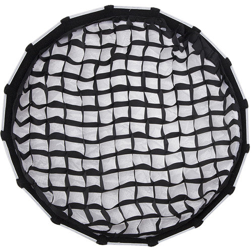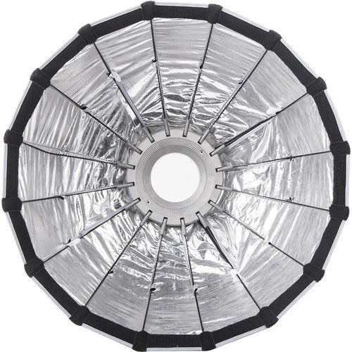Designed for light weight and portability, the 21.5" Light Dome Mini II is compatible with the Aputure Light Storm 120 and 300 Series LED lights, and in fact, any LED light with a Bowens front accessory mount. The sturdily built modifier has 16 wear-resistant Hadfield steel rods that form a circular field of light that yields wide coverage and pleasing, natural-looking catchlights in the eyes of your subject, while maximizing output with its reflective silver interior. To provide further control, Aputure includes a 40° fabric grid, which eliminates spill light but most importantly, gives you directional control of the soft source for selective lighting or dramatic effects. A filter holder is included as well, for creative color.