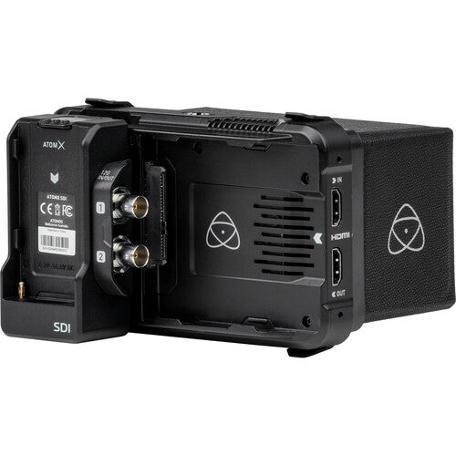 The Atomos AtomX SDI Module for Ninja V brings 12-G SDI I/O to your Ninja V monitor/recorder. The module supports 4K up to 60p as well as 2K up to 240p and is a simple addition to your Ninja V, mounting to the expansion port in the battery slot. The 12-G ports are user assignable as input or output and support industry standard SDI formats. The AtomX provides numerous playback options including HDR.