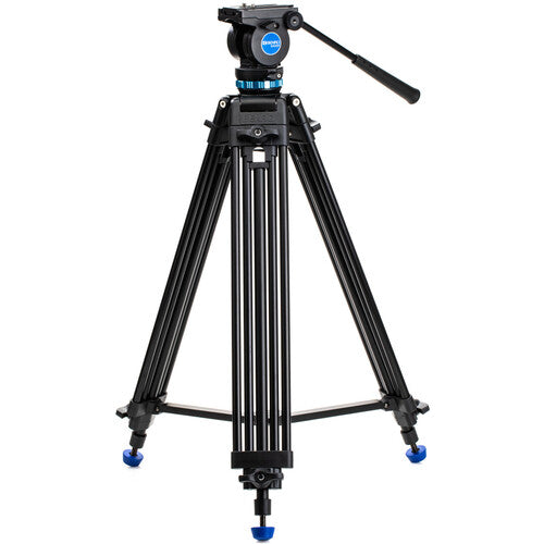 With a weight capacity up to 11 lb, the Benro KH25P Video Head & Tripod Kit from Benro is perfect for supporting DSLRs, mirrorless cameras, and smaller video cameras. The KH225P system features a 60mm ball video head features a continuous pan drag system, a sliding camera plate with two anti-twist locating pins, and a maximum height of 61.6". The continuous drag feature enables you to adjust the pan tension for smoother moves. The two anti-twist pins are designed to keep DSLRs and mirrorless cameras from twisting when mounted on the head. Each pin is spring-loaded and will retract when covered by a larger camera.