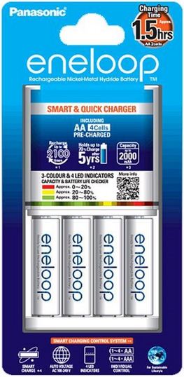 Approx. 1.5 hours quick charger with 4 AA eneloop