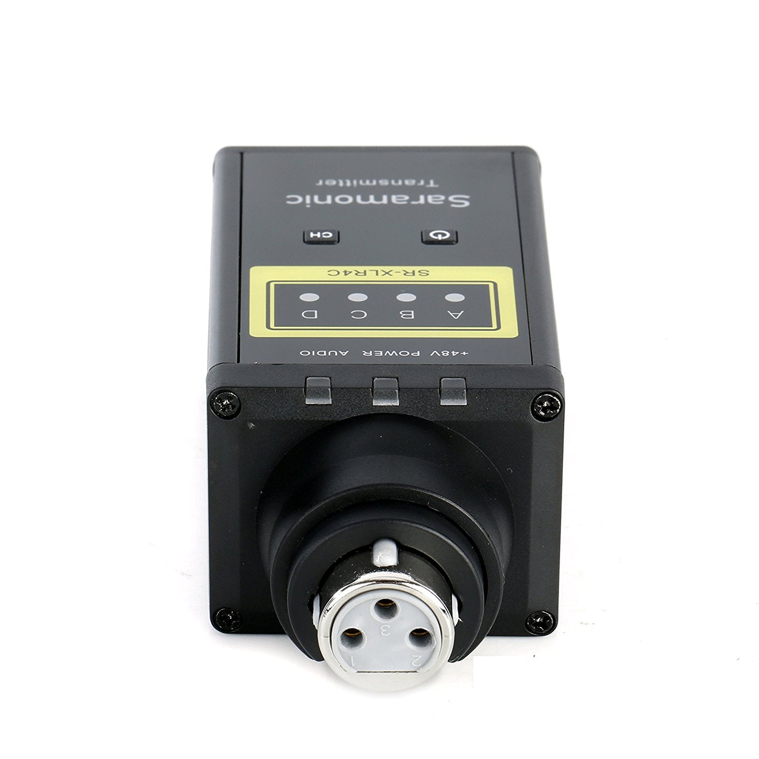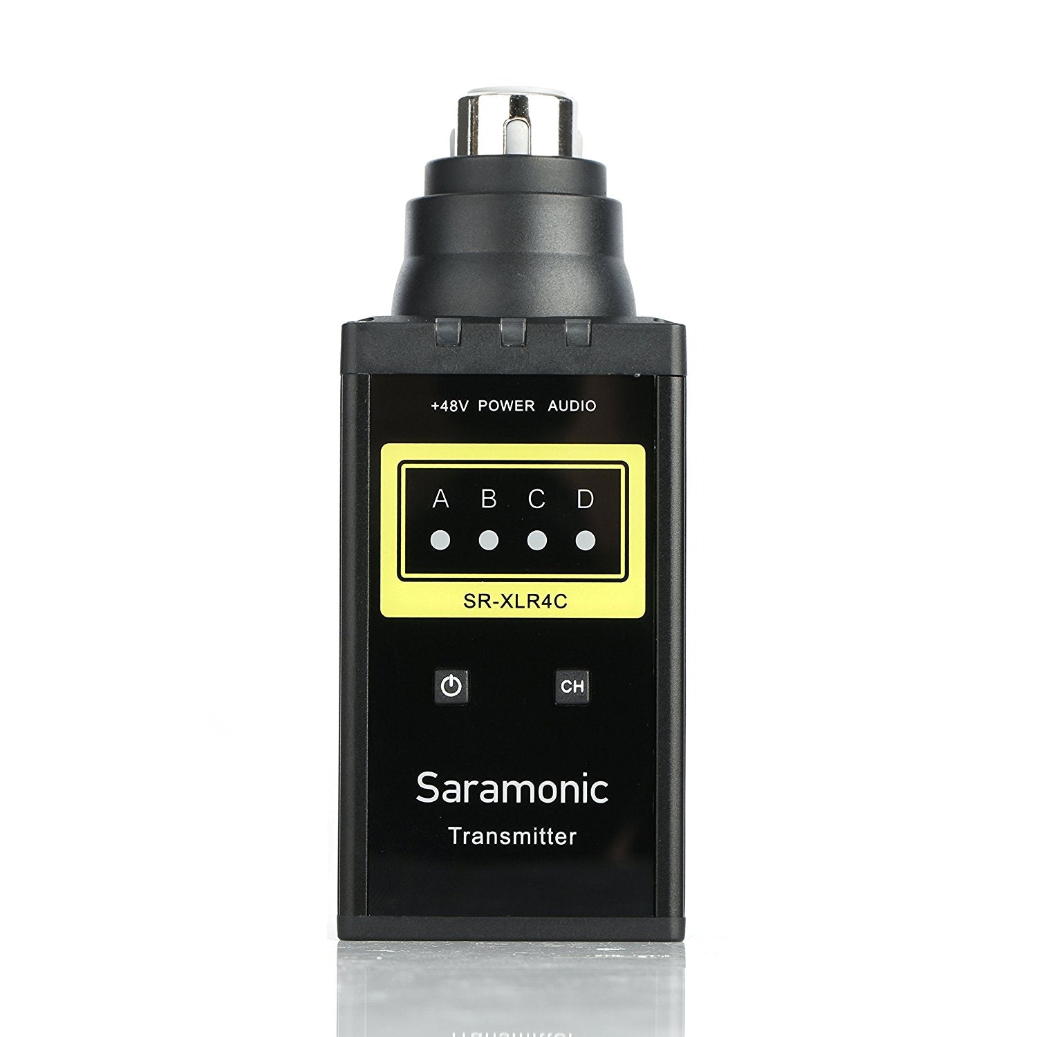 The Saramonic SR-XLR4C is a Wireless XLR Plug-in Microphone Transmitter designed to work with the SR-WM4C receiver. It can be used for DSLR cameras for videography, field recording, broadcast TV, and electronic news gathering (ENG) applications.