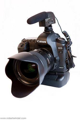 Very compact shotgun microphone for cameras with a lighting shoe mount and external microphone input. Maximum side noise rejection. Rugged all-metal housing.
