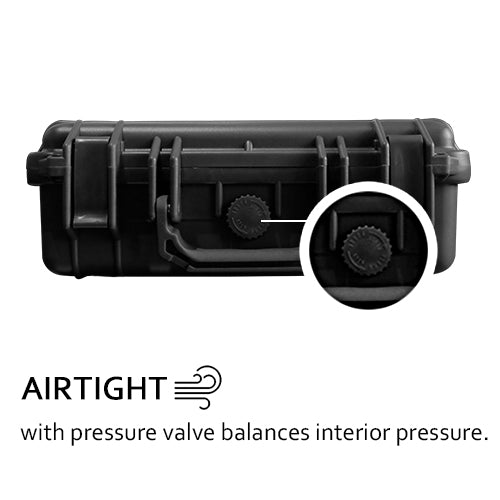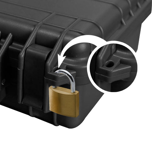 Press and Pull Latches Hold fast under impact and create flat surface for upright stability Solid-core handles are both comfortable and durable Shock proof, vibration proof, dust proof and rust proof Sealed for moisture protection Pressure release valve Stackable Tested Optional Divider