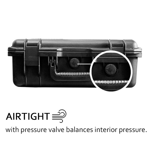 Press and Pull Latches Hold fast under impact and create flat surface for upright stability Solid-core handles are both comfortable and durable Shock proof, vibration proof, dust proof and rust proof Sealed for moisture protection Pressure release valve Stackable Tested Optional Divider