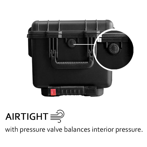 Press and Pull Latches Hold fast under impact and create flat surface for upright stability Solid-core handles are both comfortable and durable Shock proof, vibration proof, dust proof and rust proof Sealed for moisture protection Pressure release valve Stackable Tested Optional Divider