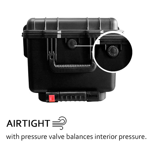 Press and Pull Latches Hold fast under impact and create flat surface for upright stability Solid-core handles are both comfortable and durable Shock proof, vibration proof, dust proof and rust proof Sealed for moisture protection Pressure release valve Stackable Tested Optional Divider